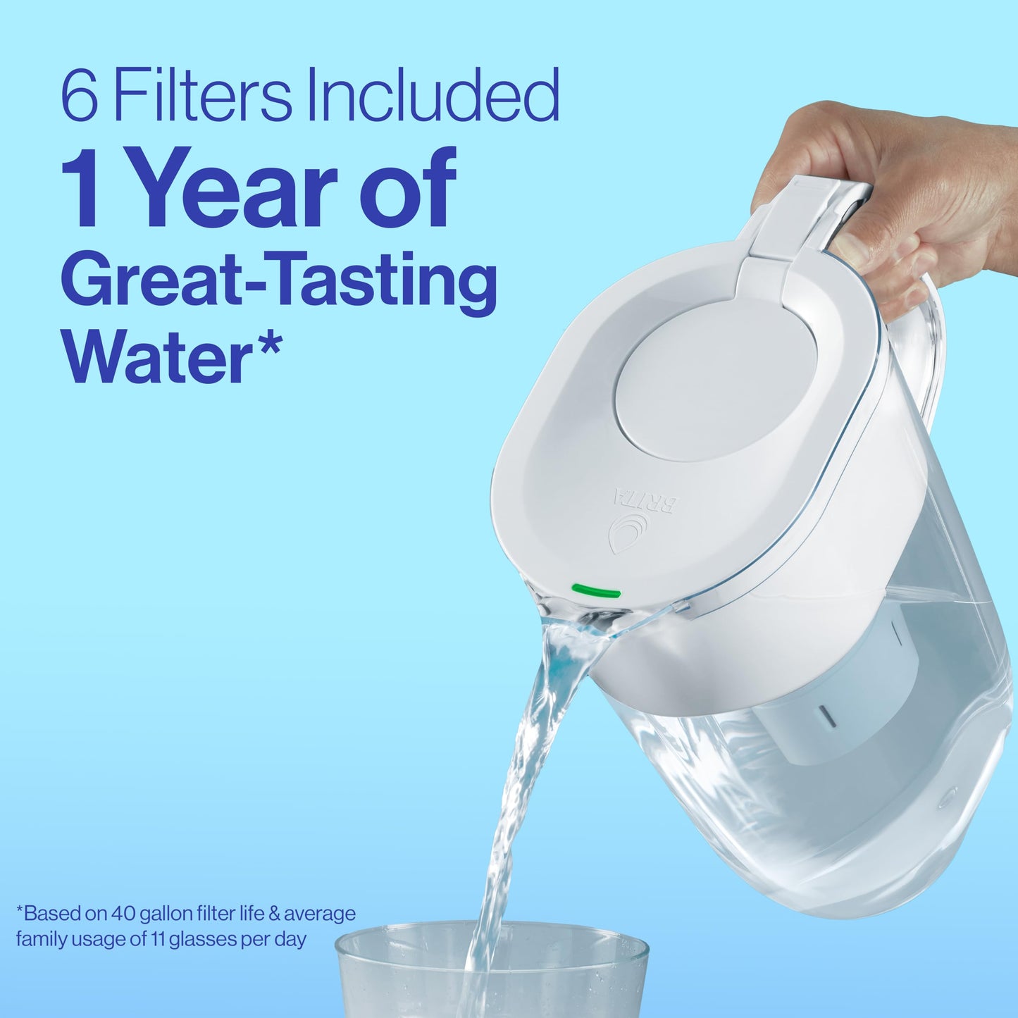 Brita Plus Filtro de agua, sin BPA, filtro de repuesto de alta densidad para jarras y dispensadores, reduce 2 contaminantes*, dura dos meses o 40 galones, incluye 6 filtros