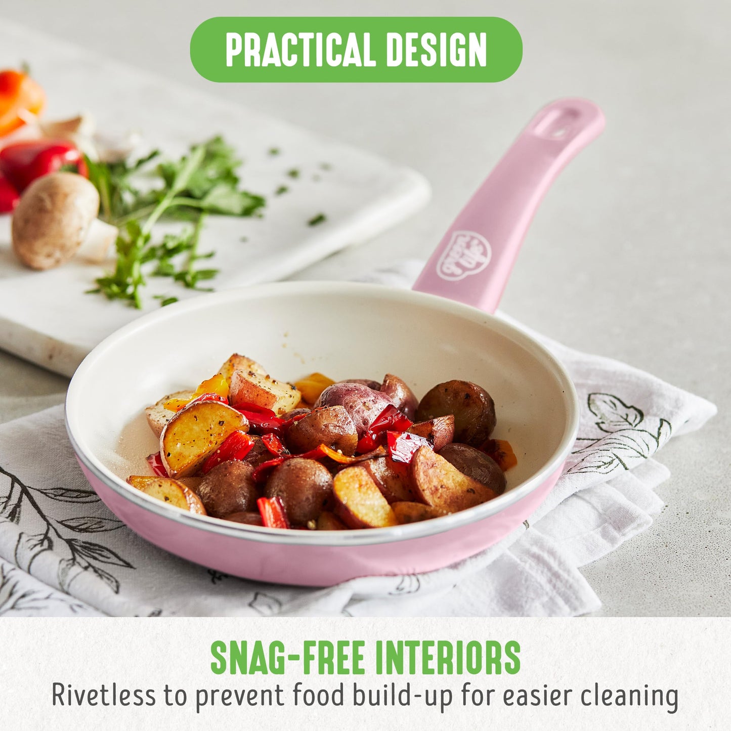 - Cerámica saludable antiadherente: nuestro revestimiento antiadherente de cerámica saludable y fácil de limpiar se deriva de la arena y ofrece una liberación sin esfuerzo con una limpieza rápida