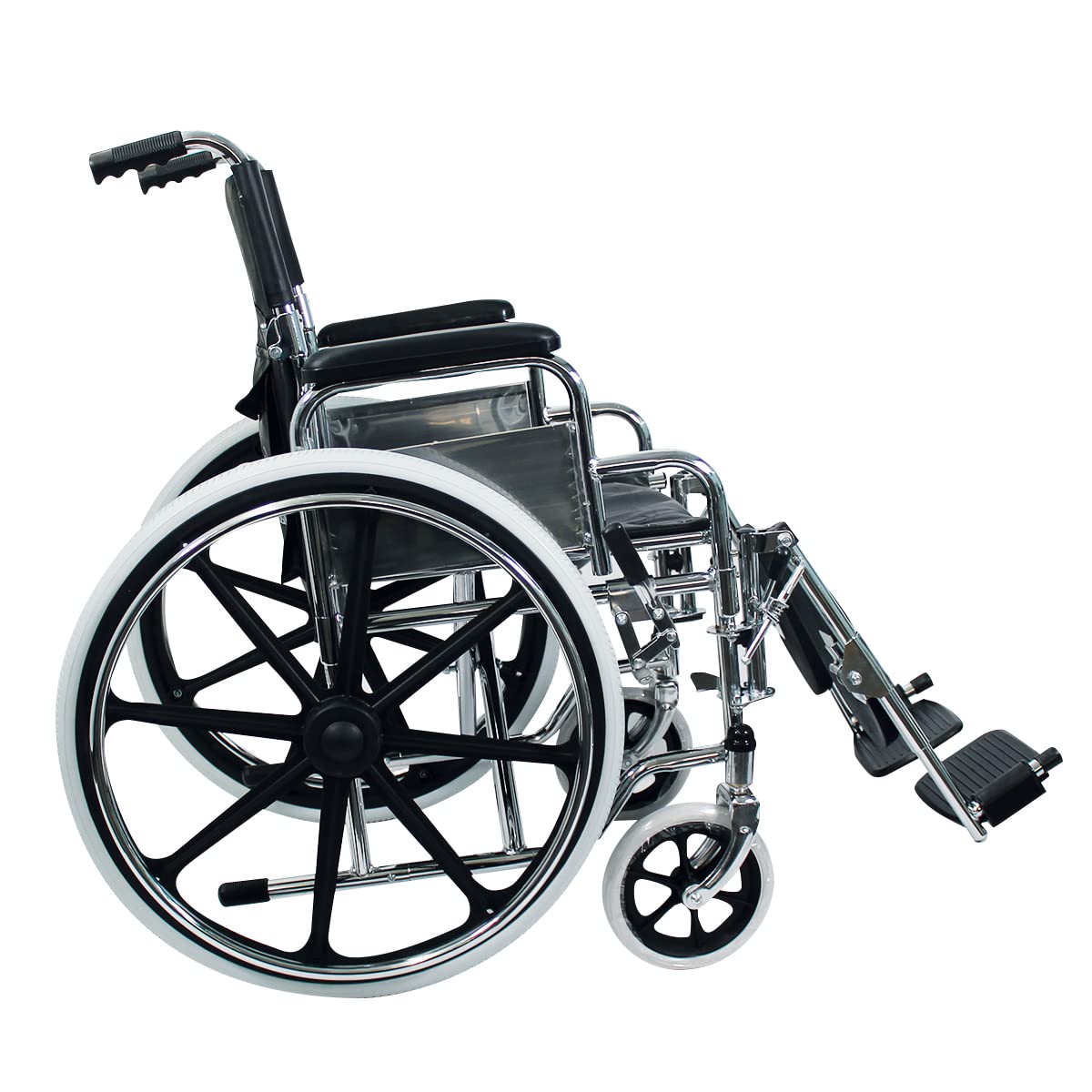 HANDY BY HERGOM Silla de Ruedas Suprema Cromada con Eleva Piernas S400 / Codera blanda / Respaldo abatible / Descansa brazos desmontable tipo escritorio / Frenos reforzados / Doble cruceta antivuelco/ Estructura plegable/ Medidas 89x95 cm