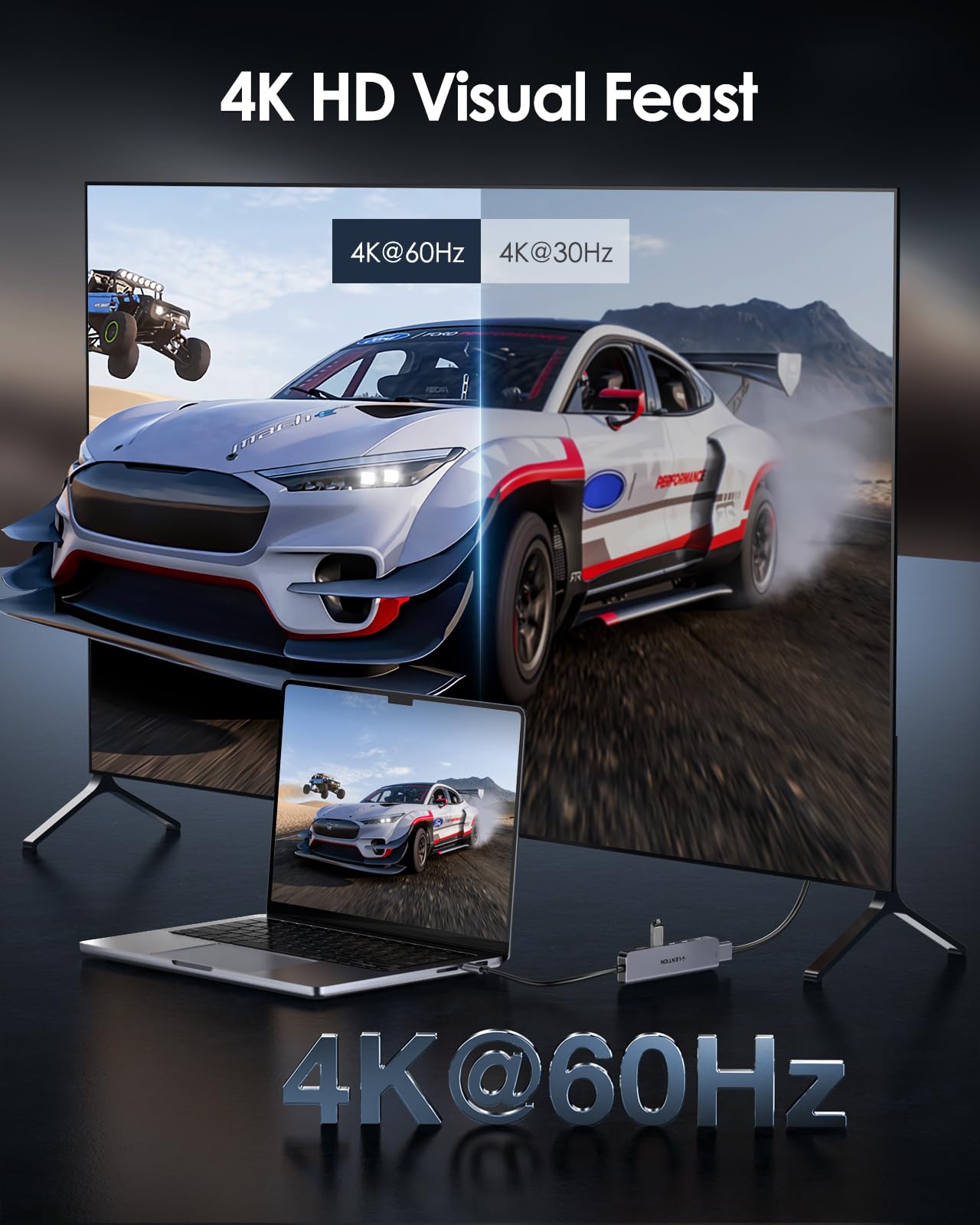 - 【4K@60Hz Display】Plug and Play! Refleje o extienda su pantalla a través del puerto HDMI a resoluciones de hasta 4K@60Hz a HDTV, monitor o proyector. La alta frecuencia de actualización de 4K@60Hz reduce significativamente el desgarro y la borrosidad de la pantalla, mejorando la experiencia de visualización para una visualización más cómoda y fluida. (Nota: asegúrese de que sus dispositivos anfitriones admiten DP 1.4 para conseguir 4k@60Hz)