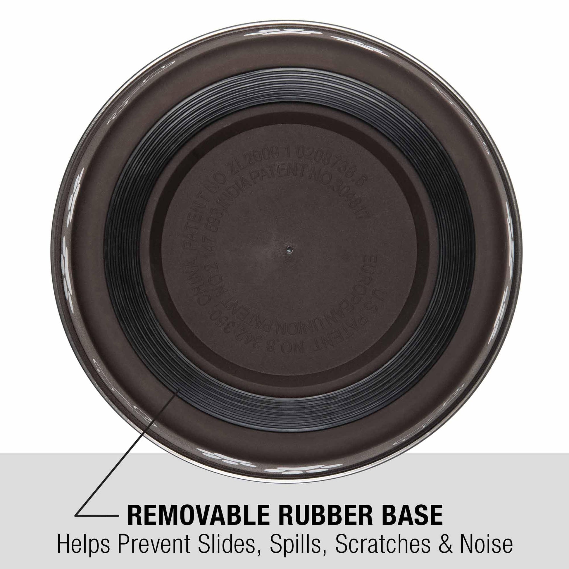 - Base de goma desmontable que evita resbalones, derrames y ruidos.