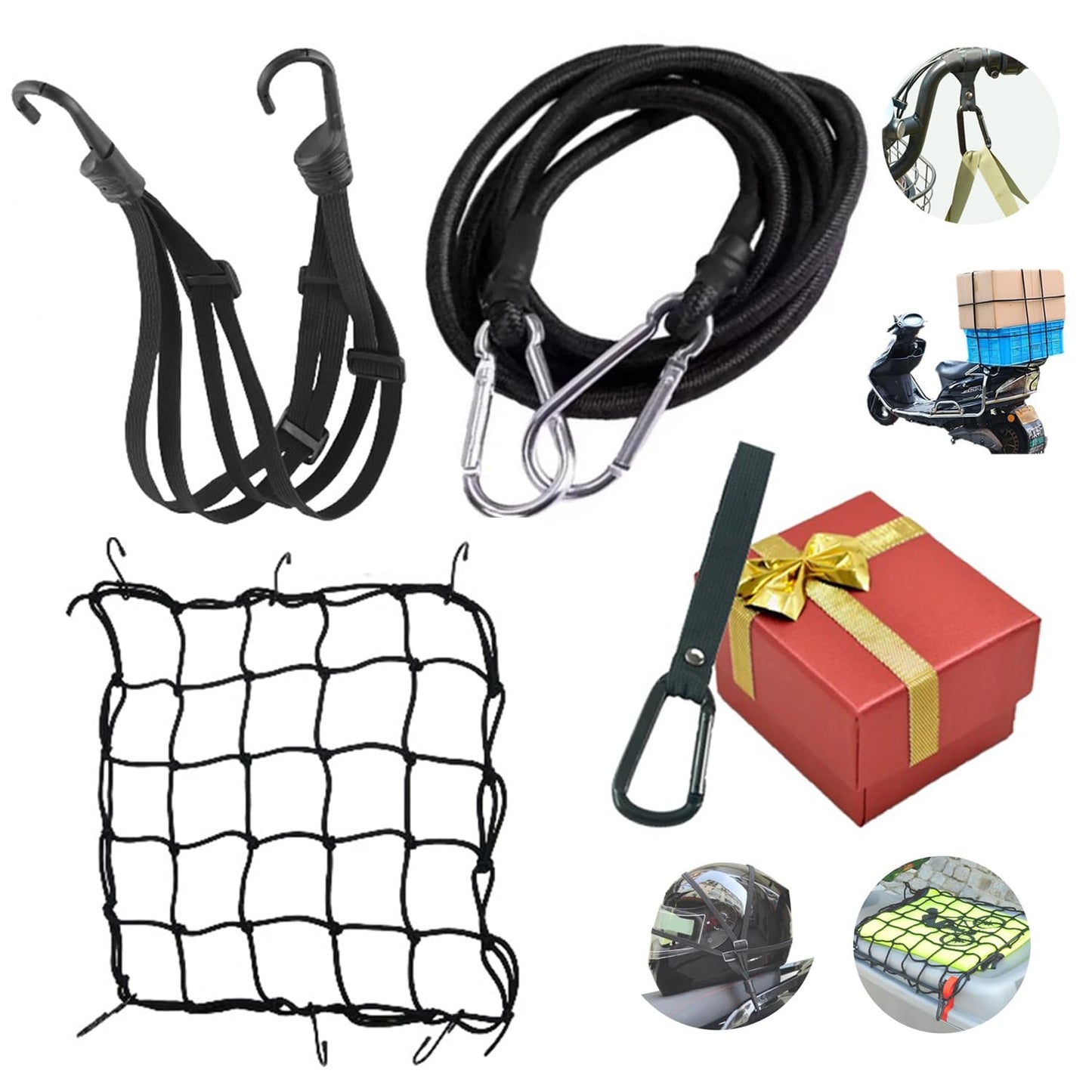 lozafot Redes Malla Moto Sujetar Casco Portabulto Cuerda Gancho,Cuerda para Sujetar Equipaje En Moto, 4 Piezas Cuerdas elásticas elásticas + Gancho pequeño